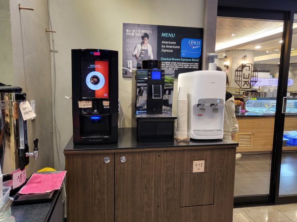 후식 코너에는 생강차와 믹스커피, 원두커피 등 다양한 음료가 준비되어 있습니다. 특히나 추운 날씨에 생강차를 준비해 놓은 것은 고반정갈비의 손님에 대한 배려와 센스가 돋보이는 점입니다.