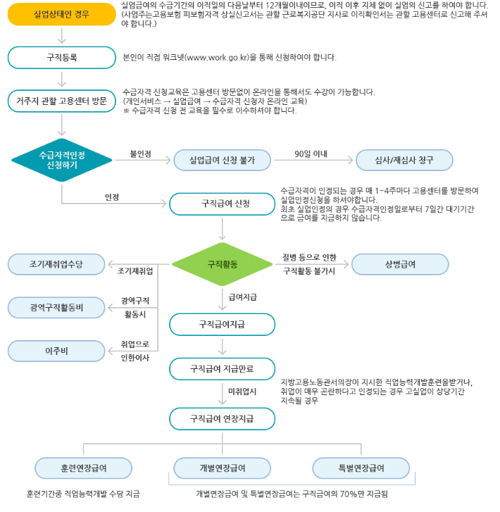 본인의 의사와 상관없이 특정 사유에 의해 현재 다니고 있는 직장을 그만두게 된다면 실업금여를 받을 수 있습니다. 내가 고용보험 가입 근로자였고 앞으로 구직활동에 적극적으로 참여할 의사가 있는 사람에게 재취업에 성공하기 전 생활의 안정을 지원하기 위해 시행되고 있는 제도입니다. 실업급여는 구직급여와 취업촉진수당으로 나누어져 있습니다. 즉 구직급여와 실업급여가 차이가 있는 것이 아니라 구직급여는 실업급여의 일부분인 것입니다. 각각의 조건을 확인하시고 꼭 신청하시기 바랍니다.