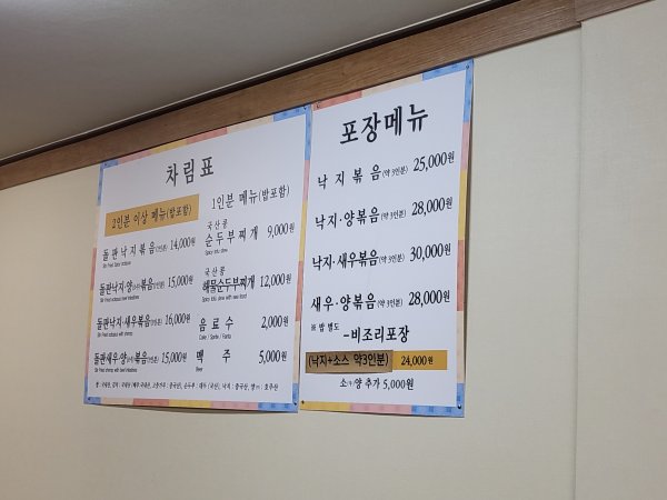 신라식당은 낙지볶음 맛집으로 유명한 만큼 여러 종류의 낙지볶음을 판매하고 있습니다. 돌판낙지볶음, 돌판낙지+양 볶음, 돌판낙지+새우볶음, 돌판새우+양+볶음은 2인분 이상 주문이 가능합니다. 순두부찌개, 해물순두부찌개 등 1인분 음식도 판매 중입니다. 여러 명이 함께 방문 시 다양한 선택을 할 수 있습니다. 신라식당은 매장에서 식사하는 것뿐만 아니라 포장주문 또한 많은 모습이었습니다. 조리음식으로 포장이 가능하며 비조리포장으로도 포장해 가실 수 있습니다. 비조리포장을 해 갈경우 포장 안에 조리방법이 같이 포함되어 있으며 사장님께서도 직접 설명해 주십니다.