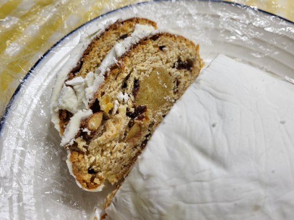 크리스마스가 되면 윈드윈이 인기가 많아지는 이유는 달콤한 슈가파우더가 빵 전체를 감싸고 있어 겨울에 소복히 내리는 눈 같기 때문입니다. 슈톨렌은 구매하고 나서부터 서늘한 곳에서 일주일까지 그냥 드실 수 있다고 합니다. 처음 겉 비닐을 뜯으면 랩으로 꼼꼼하게 포장이 되어 있습니다. 빵을 잘라보면 아몬드와 같은 견과류가 곳곳에 있고 가운데 앙꼬 같은 것이 아문드파우더와 설탕을 같이 반죽한 머지팬입니다. 먹어보면 마치 머핀을 돌돌 말아놓은 느낌입니다. 달달하면서 고소한 맛이 좋았습니다. 하지만 달달한 맛에 특유의 향이 있어서 호불호는 조금 갈릴 것 같습니다.