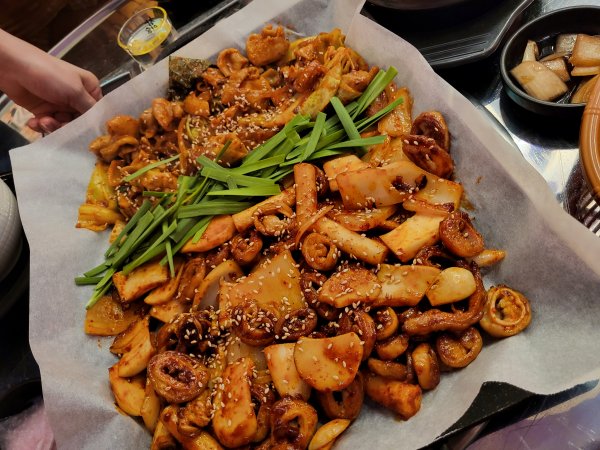 같이 주문한 마늘똥집입니다. 마늘똥집 역시 질긴 식감이나 잡내 하나 없이 고소하고 매콤하면서 맛있게 조리되어서 나왔습니다. 포차 분위기에서 소주 한 잔이 생각날 때 안성맞춤인 곳인 것 같습니다.