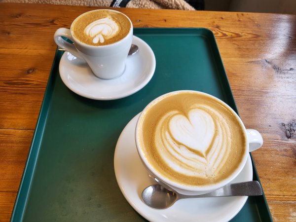 카페라테와 플랫화이트를 주민하였습니다. 두 잔 모두 예쁘게 라떼아트를 해서 가져다 주셨습니다. 플랫화이트는 진한 커피향이 강했고 카페라떼는 고소한 우유향이 강했습니다. 처음가본 곳이라 아메리카노를 마셔서 커피맛이 어떤지 느껴보고 싶었지만 이 날은 라떼 종류가 마시고 싶어서 카페라테를 주문했습니다. 다음번 방문 때는 바스코 치즈케이크와 아메리카노를 마셔보도록 하겠습니다.