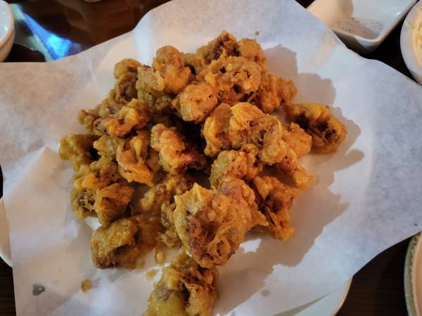 나로도치킨에서 가장 선호하는 메뉴입니다. 바로 튀겨나왔기 때문에 바삭할 뿐만 아니라 똥집도 질기거나 누린내가 나지 않고 깔끔합니다. 함께 나온 참기름장이나 양념에 찍어먹으면 됩니다. 한 가지 아쉬운 점은 개인적으로는 똥집튀김을 겨자소스에 찍어먹는 것을 좋아하는데 나로도 치킨은 겨자소스가 제공되지 않습니다.