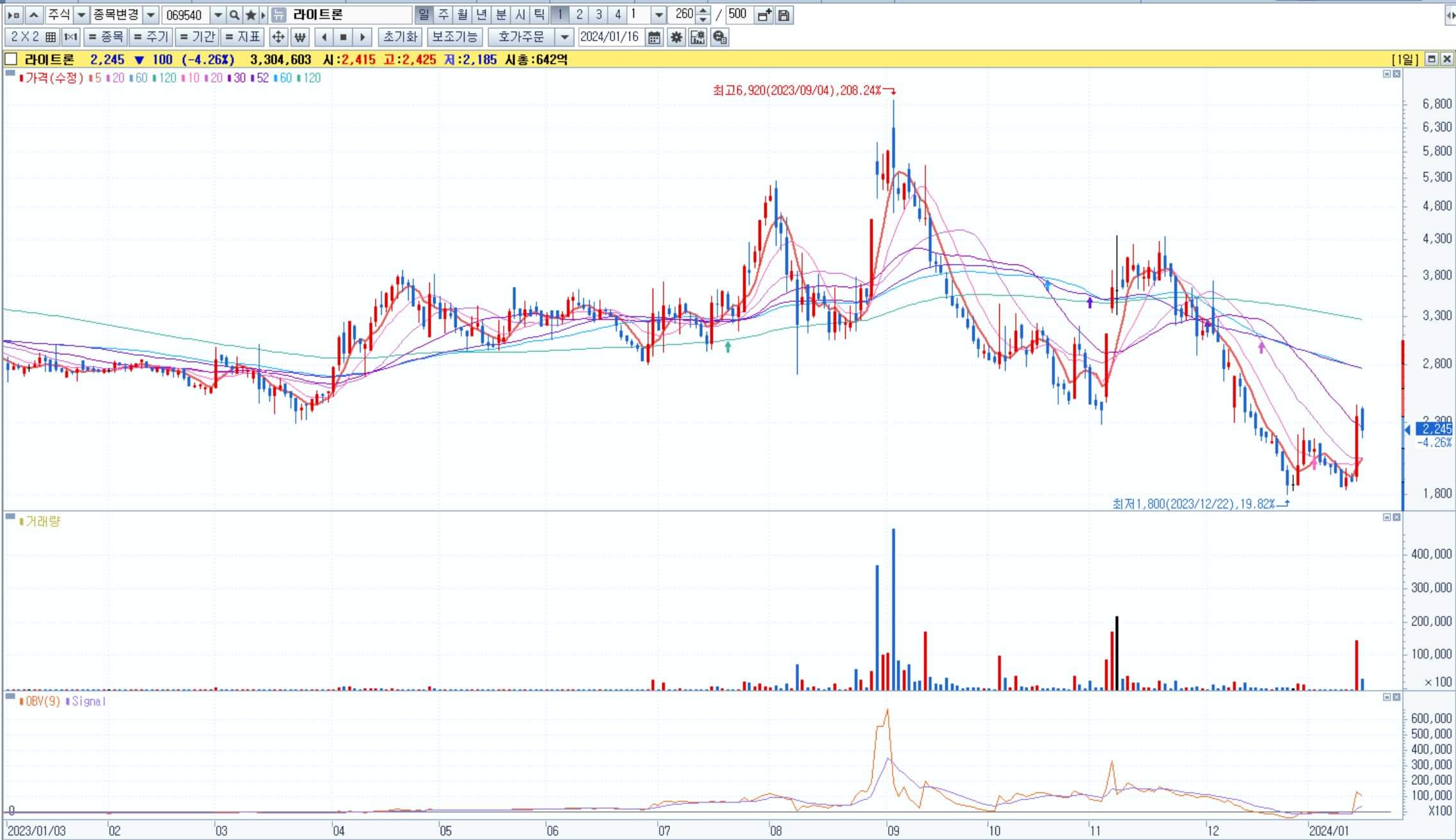 라이트론은 광섬유를 매체로 광신호를 전송하는 방식의 광통신분야에 사용되는 광송신기(Optical Transmitter) 및 광수신기(Optical Receiver), 광송수신기(Optical Transceiver) 모듈의 연구개발, 제조 및 판매를 사업으로 하고 있습니다. 세부적으로는 무선이동통신 기지국/중계기용 광모듈, Telecom/Datacom 용 광모듈, 유선 광가입자망(FTTH)용 광모듈, SD/HD급의 고화질 Broadcasting 전송용 광모듈, Cable TV용 광모듈로 구분되며 데이터 센터용 광모듈 등으로 사업범위를 확대해 나가고 있습니다. 오늘 조정을 받기는 했지만 어제 장중한때 상한가를 터치하는 등 강한 상승흐름을 보여주었습니다.
