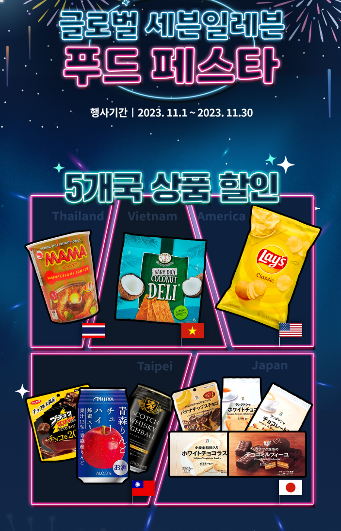 어김없이 다가온 겨울의 문턱 11월입니다. 계절이 변한 만큼 그에 맞는 세븐일레븐 편의점의 행사 상품이 준비되었습니다. 11월은 수능과 빼빼로데이 등의 이벤트가 있는 날입니다. 또한 겨울을 준비하기 위한 많은 상품들도 준비되어 있으니 세븐일레븐에서 저렴하고 현명한 쇼핑 즐기시기 바랍니다.