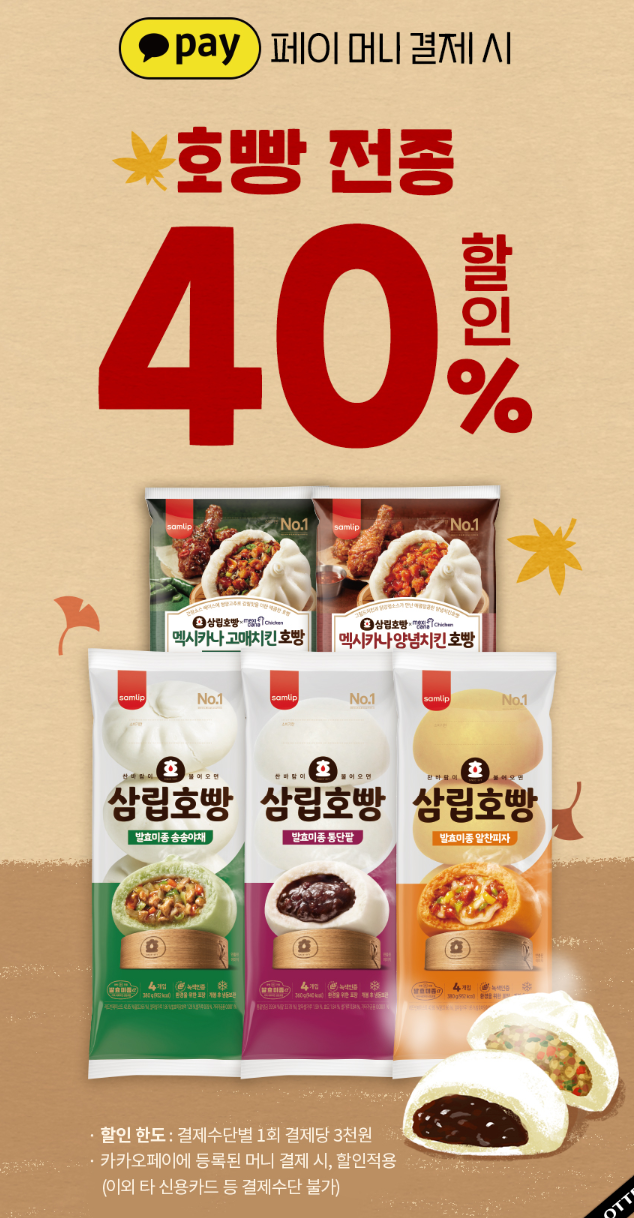 겨울하면 떠오르는 대표적인 간식은 바로 호빵입니다. 또한 호빵 하면 바로 삼립호빵입니다. 세븐일레븐에서 카카오페이머니로 결제 시 호빵 전 제품을 40% 할인된 가격에 구매하실 수 있습니다.
