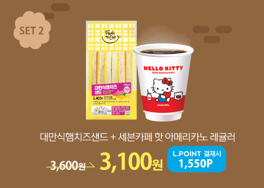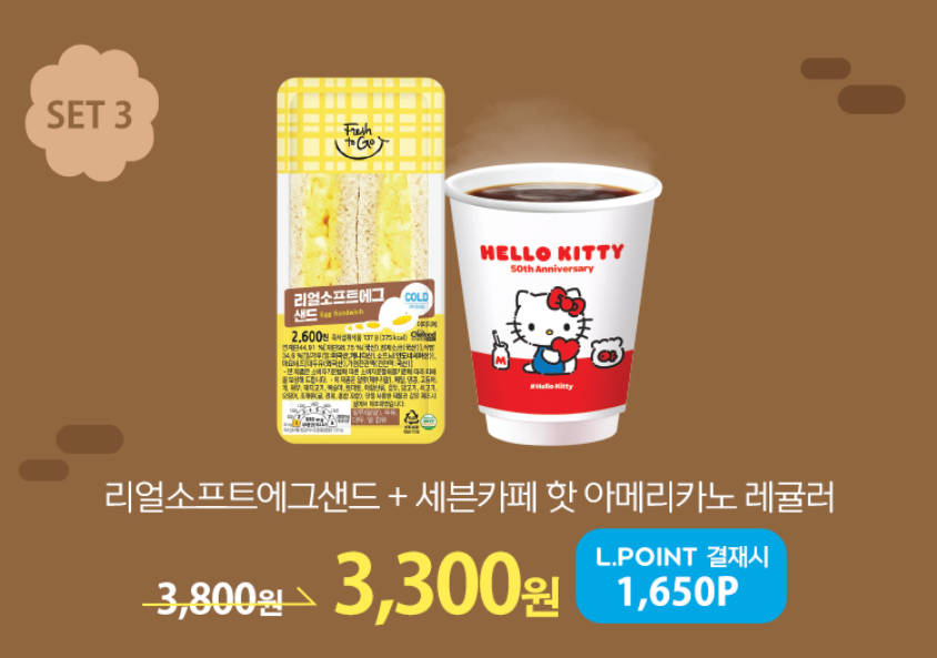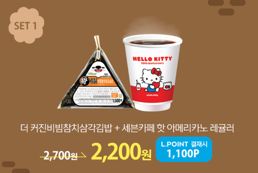 12월 한 달 동안 아침 6:00 ~ 09:00에 아침행사상품 3종 구매시 할인혜택을 받을 수 있으며 L.POINT 결제시 추가 50% 할인 혜택을 받을 수 있습니다. 행사상품은 SET 1) 더 커진비빔참치삼각김밥 + 세븐카페 핫 아메라카노 레귤러, SET 2) 대만식햄치즈샌드 + 세븐카페 핫 아메라카노 레귤러, SET 3) 리얼소프트에그샌드 + 세븐카페 핫 아메라카노 레귤러 입니다.