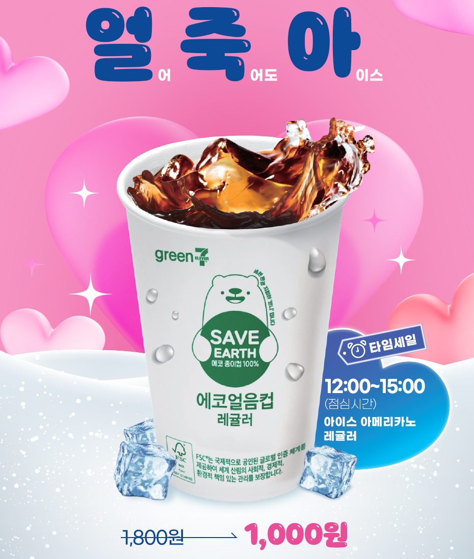 세븐일레븐에서 세븐카페에서 12:00 ~ 15:00 점심시간 동안 아이스아메리카노 레귤러 사이즈를 기존 1,800원이 아닌 1,000에 구매할 수 있는 타임세일을 진행 중에 있습니다. 또한 아이스 전종 구매 후 앱 스탬프 7개 적립 시 ID당 1회 한정으로 아이스아메리카노 레귤러를 증정하는 행사를 진행하고 있습니다. 또한 앱 스탬프 최다 적립자 3명에게 모바일 상품권 5만 원 증정 행사도 진행하고 있으니 많은 참여 하시기 바랍니다.