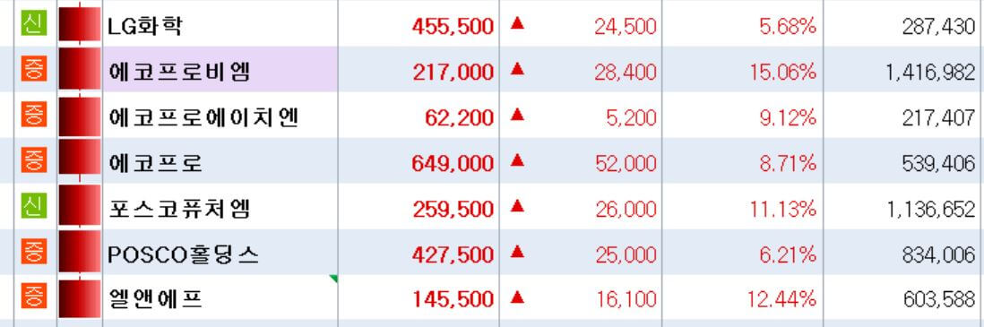 장초반 반도체 섹터가 시장의 상승을 이끌었다면 장 막판으로 갈수록 에코프로 그룹주를 포함한 2차전지 섹터가 급등하면서 코스닥의 엄청난 상승을 이끌었습니다. 에크포로비엠 15.06%, 포스코퓨처엠 11.13%, 엘앤에프 12.44% 등 10% 이상 양극재 기업들이 급등하는 모습을 보여주었다. 양그재 뿐만 아니라 음극재, 분리막 등 소재관련주, 셀메이커, 장비주 등 그동안의 하락을 만회하기에는 부족하지만 그래도 의미 있는 수준의 반등을 보여주는 모습이었습니다.