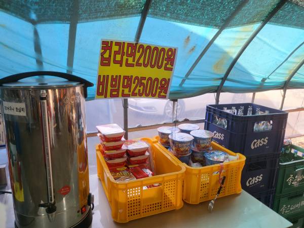 또한 식사를 위한 컵라면과 비빔면 등이 판매가 되고 있습니다. 볶음밥을 드실 분들은 판매되고 있는 햇반을 구매하셔서 직접 볶음밥을 만들어 드시면 됩니다.