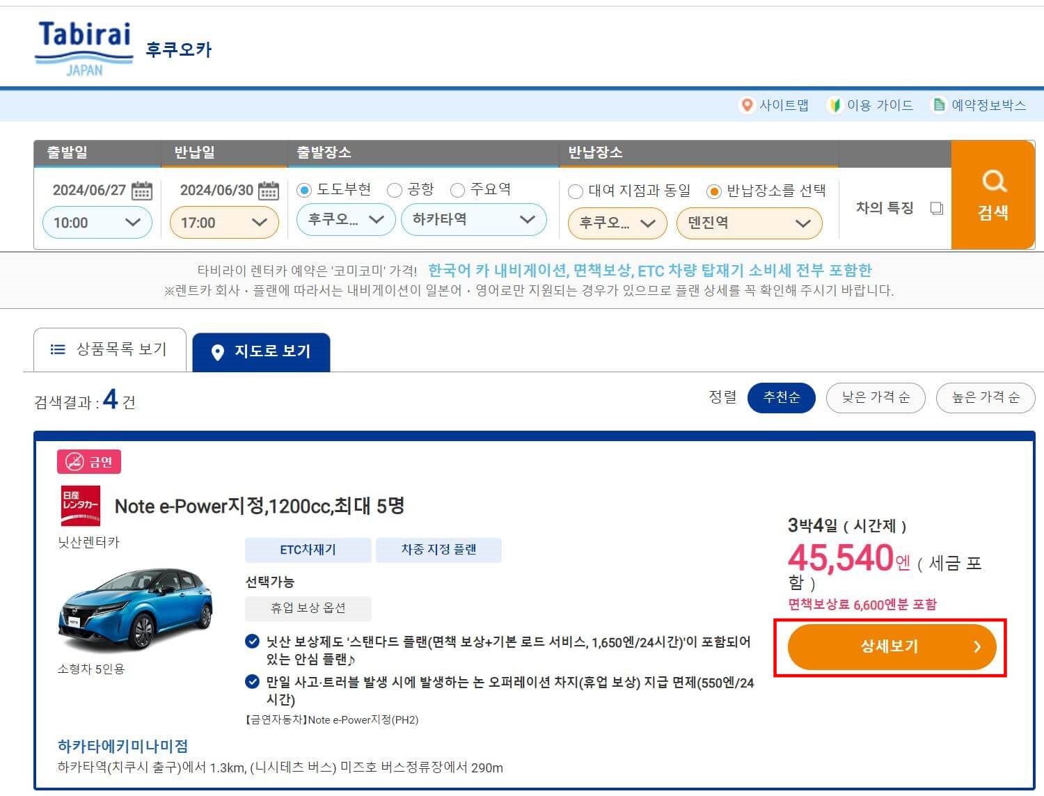 일본은 대중교통이 편리하지만 조금 더 편안하고 효율적인 여행 동선을 위해서 렌트카를 이용하는 여행객들이 늘어나고 있습니다. 일본 렌트카 예약 시 여러 렌트카 회사를 한눈에 비교할 수 있는 타비라이(Tabirai) 사이트를 이용해 보시기 바랍니다.