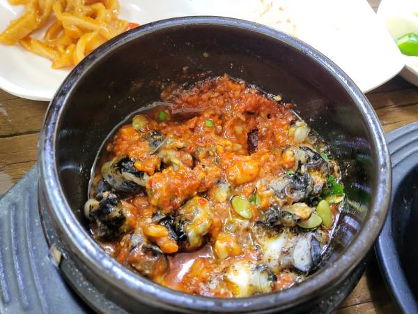 우렁이쌈장, 우렁이강쌈장, 우렁이된장은 뚝배기에 끓여서 나왔습니다. 정식을 시킨 인분수가 많으면 뚝배기 크기가 더 크게 나오는 것 같습니다. 우렁이된장은 살짝 간이 쌘 느낌이었지만 그렇다고 엄청 짜서 못먹겠다 할 정도는 아니었습니다. 밥과 함께 먹기 좋은 간이었습니다.