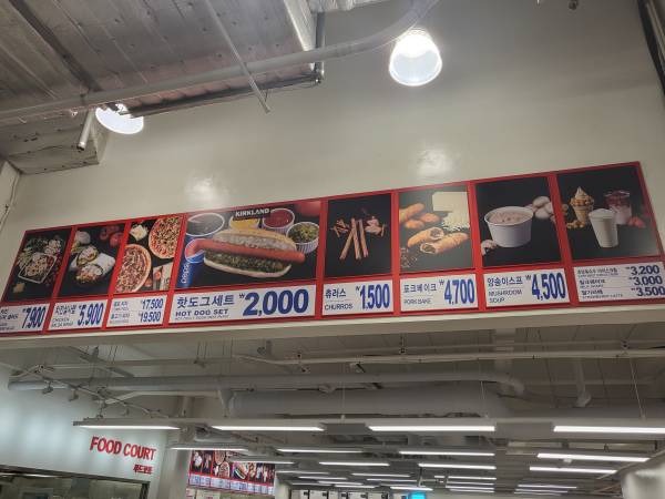 푸드코트를 방문하는 또 다른 재미는 푸드코트입니다. 코스트코 양재점의 푸드코트는 지하 1층 계산대 바로 앞에 위치하고 있어 쇼핑을 마치고 출출해진 배를 채우기에 딱입니다.