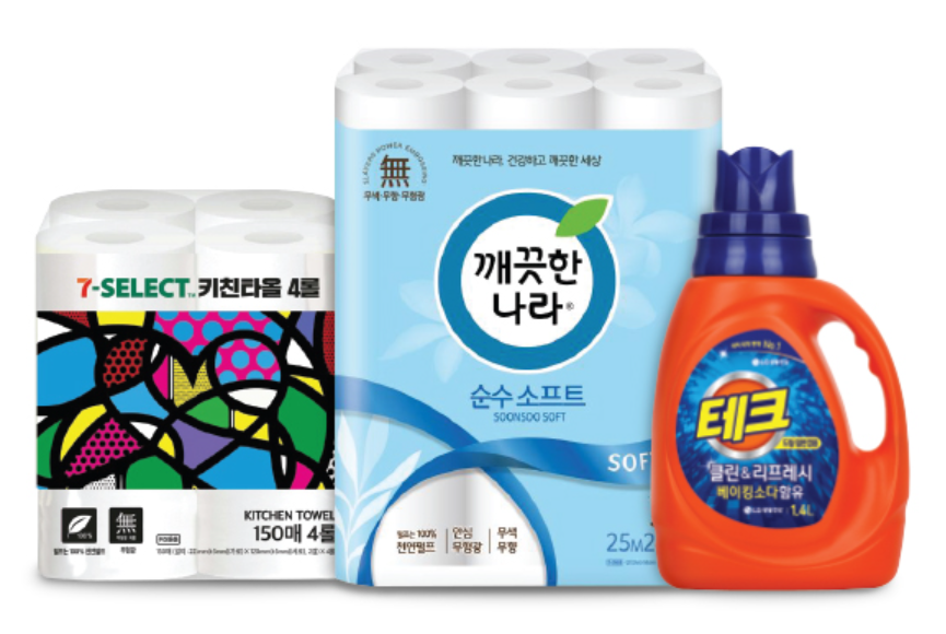 1+1 행사 상품은 깨끗한나라3겹소프트 24롤(펄프), PB)키친타올150매*4롤, PB)new미용티슈200매*3입, LG)테크베이킹소다액체세제, LG)테크실내건조1.4L(공용) 입니다. 생필품이 들이라 구매할 시기가 된 분들은 이번 기회에 꼭 구매하시기 바랍니다.