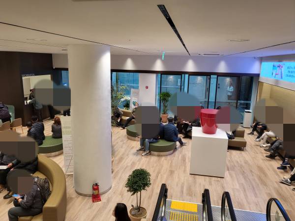 1층은 건강검진 예약을 한 사람들이 접수를 할 수 있는 로비와 탈의실이 있습니다. 탈의실에서 검진복으로 갈아입은 후 검진을 위해서 2층으로 이동을 하게 됩니다.