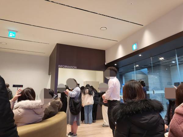 하나로리더스헬스케어의 검진시간은 오전 7시 30분 부터로 안내되어 있지만 실제로 검진시작 시간 되기 전부터 많은 사람들이 접수를 기다리고 있었습니다. 하나로리더스헬스케어 검진예약을 한 후 검진 당일 방문하면 INFORMATION에서 번호표를 뽑은 후에 접수 순서를 기다려야 합니다. 순서가 되면 다시 INFORMATION을 방문하여 접수상태 및 사전문진 여부를 확인 받습니다.