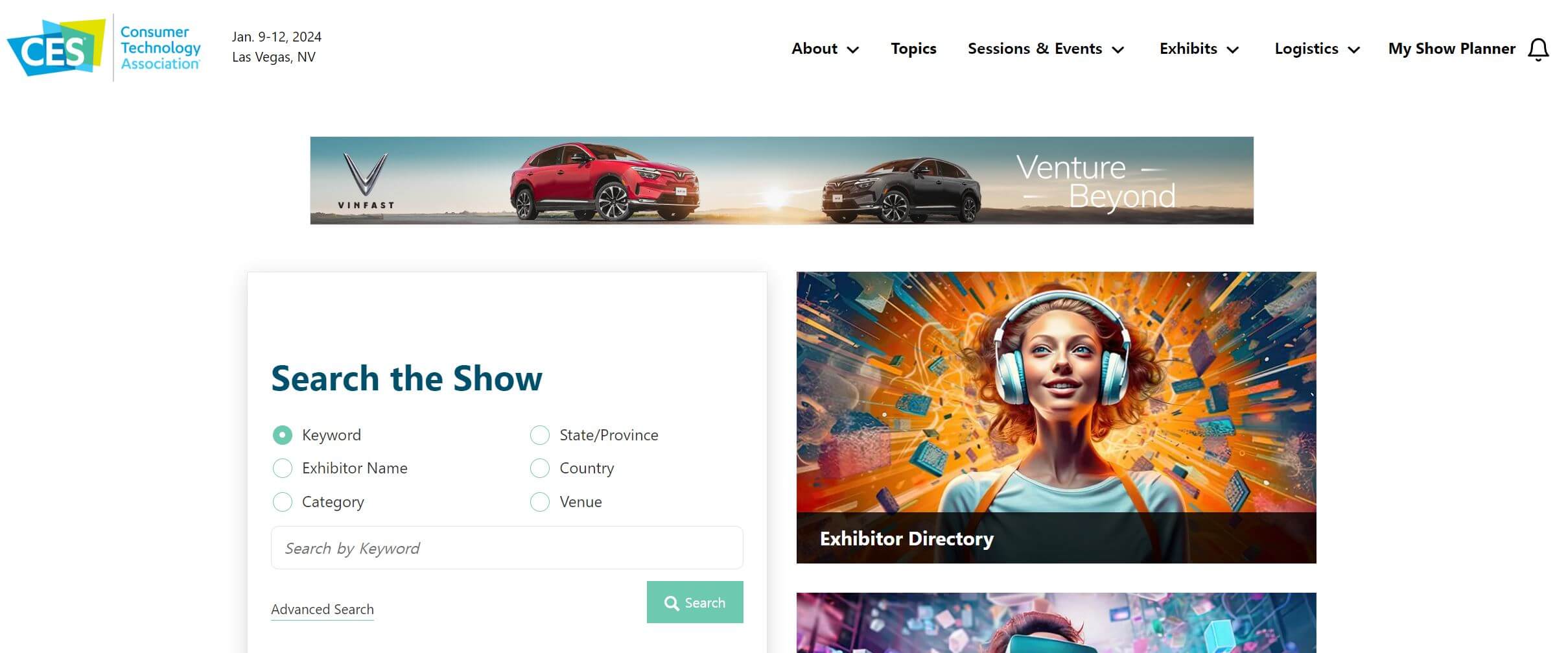 이번 CES 2024는 2024년 1월 9일 ~ 1월 12일까지 미국의 라스베거스에서 개최됩니다. 매년 개최되는 CES에서 선보인 기술들이 해당 연도의 기술 트렌드를 이끌었기 때문에 이번 CES를 통해서 2024년도의 투자 아이디어를 얻을 수 있을 것으로 로 보입니다. CES 2024의 참가기업은 CES 공식 홈페이지에서 확인 가능합니다. 아래 버튼을 클릭하시면 CES 2024에서 참여하는 기업들을 키워드, 국가, 카테고리 등으로 확인할 수 있으니 궁금한 분야나 참여 국가별로 검색하셔서 참가기업을 확인하시기 바랍니다.