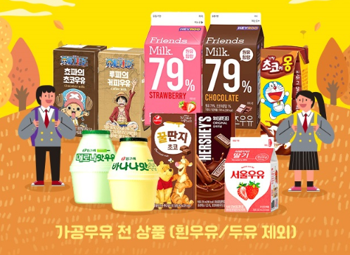 성장기 청소년들은 우유 섭취를 통해 성장에 필요한 영양소를 얻게 됩니다. 흰우유, 두유 외 맛과 영양을 담은 다양한 가공우유 제품들이 많이 있습니다. 카카오뱅크 mini를 통해 결제시 20% 할인된 가격으로 가공우유를 구매할 수 있습니다.