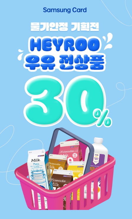 날로 더해져 가는 고물가 시대에 우유 하나 사 먹기도 무서운 요즘입니다. CU편의점에서 삼성카드로 결제 시 우유 전 상품을 30% 할인된 가격에 구매하실 수 있습니다.