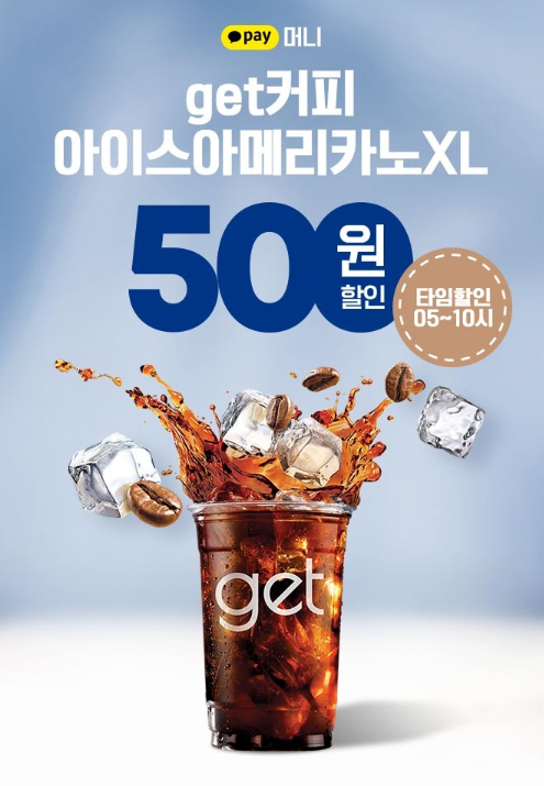 CU편의점에서 아침 5시 ~ 10시 카카오페이 머니로 get커피 아메리카노 XL라지 결제시 500원 할인을 받을 수 있는 행사가 진행 중입니다. 무더운 여름 맛도 좋고 양도 많은 시원한 아이스커피로 하루를 시작해 보시기 바랍니다.