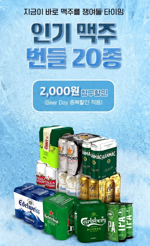 더운 여름 하루를 마치고 샤워를 한 후 마시는 맥주는 고된 하루를 보생해주는 가장 큰 기쁨입니다. CU편의점에서는 인기 맥주 번들 20종을 2,000원 청구할인받을 수 있는 행사를 진행하고 있습니다.