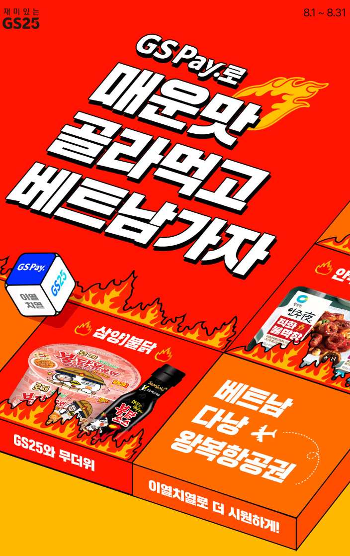 "GS Pay로 매운맛 골라먹고 베트남가자!" 행사는 8월 한 달간 진행됩니다.(8.1 ~ 8.31)